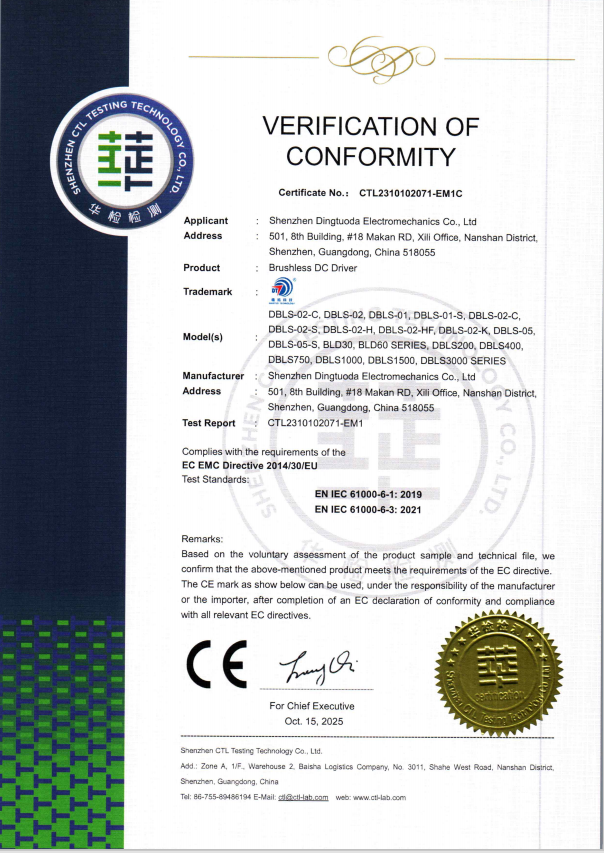 首頁->產(chǎn)品認證->無刷驅(qū)動器CE證書
